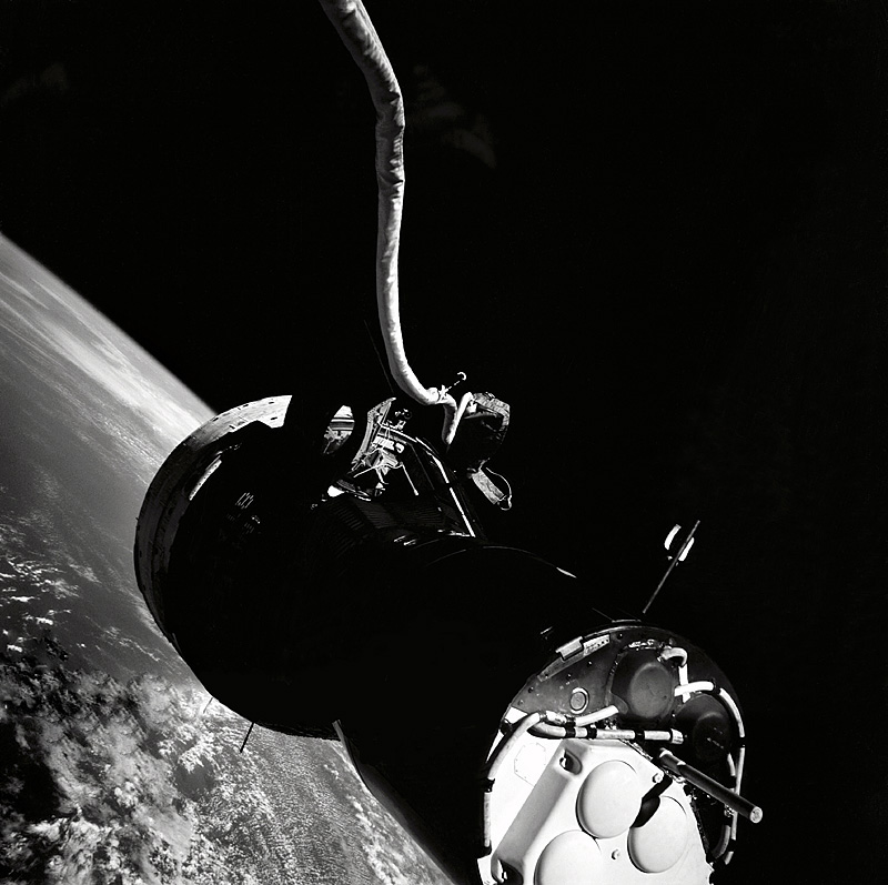 A tak se odrazil od své lodi, od ochranné skořápky jménem Gemini 9. Jediné spojení s lodí bylo právě ono lano. Jak ale brzy zjistil sebemenší pohyb pokaždé ovlivnil celé jeho tělo,