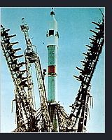 SOJUZ 3 ![]() start: 26. října 1968 08:34 UTC posádka: Georgij Beregovoj ![]() volací znak: Argon hmotnost lodi: 6575 kg kosmodrom: Bajkonur, Kazachstán vzletová rampa: LC1 trvání letu: 3 dny 22 hodin 45 sekund přistání: 30. října 1968 v 07:25 UTC Sojuz 3 byla první pilotovaná loď Sojuz po nehodě SOJUZU 1 při které zahynul kosmonaut Vladimir Komarov. V plánu bylo přiblížení a spojení s nepilotovanou lodí Sojuz 2, která byla vypuštěna o den dříve. Systémy automatického spojení byly několik týdnů předtím vyzkoušeny při společném letu Kosmos 212 a Kosmos 213. Při přípravě na tuto misi při havárii letadla zemřel JURIJ GAGARIN. PROBLÉM S TRENAŽÉREM Sedmačtyřicetiletý Beregovoj se nemůže naučit na trenažéru spojení s druhou lodí. Nakonec před státní komisí zkoušku udělá, byt' s mnohem horším výsledkem než jeho kolegové kosmonauti Šatalov a Volynov. Někteří členové státní komise namítají: "Pochybujeme o správnosti jeho zařazení. Vynechává mu pamět', je nepozorný, nedokáže se soustředit dělá školácké chyby..." Těsně před startem si generál Kamanin domlouvá s Beregovým tajná poplachová hesla. Operátorům v řídícím středisku v Jevpatorii na Krymu je nesdělují. NEZDAŘENÉ SPOJENÍ Nejdříve startuje z Bajkonuru pasivní bezpilotní Sojuz 2 a po něm druhý den, 26. října, Sojuz 3 s Beregovým. Oba stroje se k sobě přibližují na vzdálenost pouhých 11 kilometrům. Další sbližování Beregovoj nezvládá. Přehlédl, že pasivní Sojuz 2 se k němu blíží hlavou dolů, a cestou k němu spotřeboval povolené množství paliva. Nakonec mu k cíli chybí žalostných 30-40 metrů. Mimo této operace se kosmonaut věnoval fotografování planety a pozorování okolí lodě. Dráha letu se pohybovala ve výši 177-241 km nad Zemí. HRDINA SSSR Kabina s kosmonautem přistála na padáku na území Kazašské SSR poblíž města Karagangy. Po návratu kosmonauta se neúspěch mise před veřejností zatajuje. Beregovoj dostává obvyklou hvězdu hrdiny SSSR, později hodnost generála. Zato inženýři v CKBEM (Ústřední konstrukční kancelář experimentálního strojírenství) mu pořádně vynadali. Takového kosmonauta nepotřebujeme!