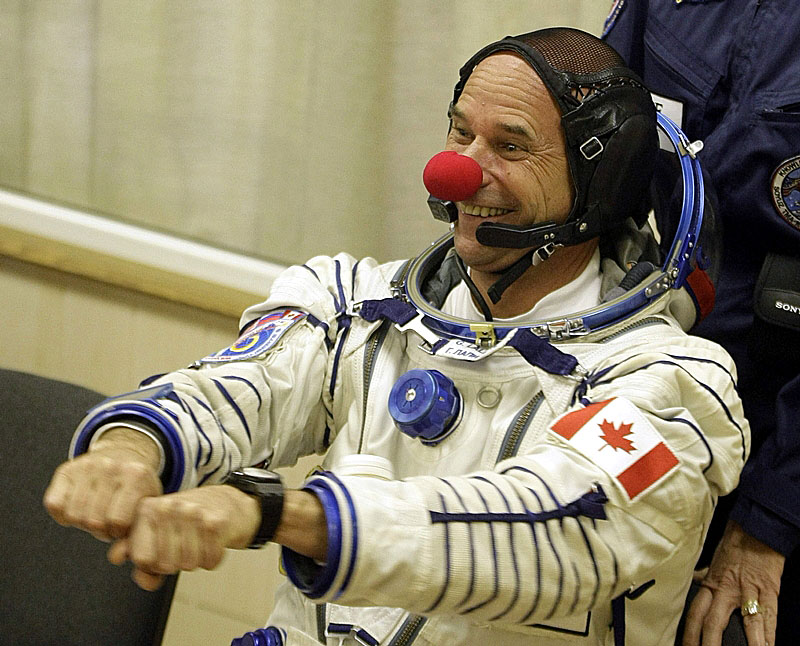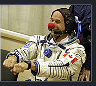 PRVNÍ KLAUN VE VESMÍRU Guy Laliberté se stal prvním klaunem ve vesmíru - do sojuzu usedl s rudým klaunským nosem a s sebou jich má dalších osm. Padesátiletý zakladatel a většinový vlastník slavného cirkusu Cirque du Soleil se zasadil o uvolněnou náladu před startem. Při nástupu do kosmické lodi posílal svým příznivcům na dálku polibky a své kolegy strhl ke zpěvu popové písně Mammy Blue. Laliberté za let zaplatil 35 miliónů dolarů (přes 600 miliónů korun). Může být na dlouhou dobu posledním vesmírným turistou, jelikož NASA plánuje skončit mise svých raketoplánů.