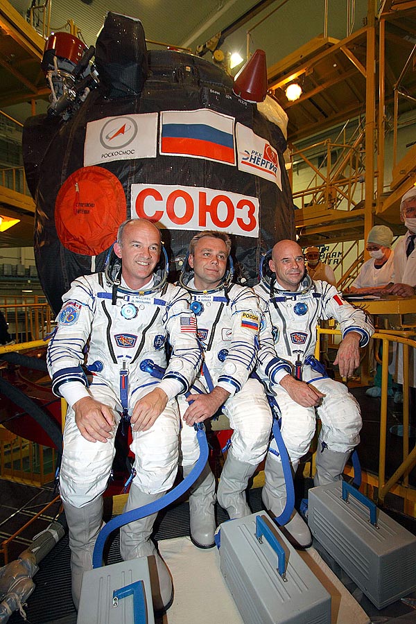 Tříčlennou posádku Sojuzu TMA-16 tvořili vedle kanadského miliardáře Guye Lalibertého profesionální kosmonauti Rus Maxim Surajev a Američan Jeffrey Williams.
