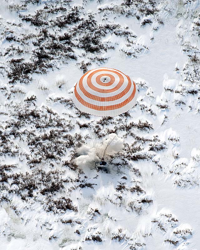 Pro oba tak skončil bezmála půlroční pobyt ve vesmíru.Mluvčí ruského střediska pro řízení kosmických letů Valerij Lyndin novináře upozornil, že poprvé za deset let, kdy ruské Sojuzy zajišťují dopravní spojení s Mezinárodní vesmírnou stanicí, byl nyní přistávací modul "poloprázdný". Zatímco dosud se z orbitálního komplexu vždy vraceli tři kosmonauti, tentokrát zůstalo jedno křeslo neobsazené. Třetí kosmonaut, Guy Laliberte se vrátil již po týdnu pobytu na ISS s posádkou SOJUZU TMA 14. Prázdné místo v modulu využila posádka ISS k umístění nákladu. |